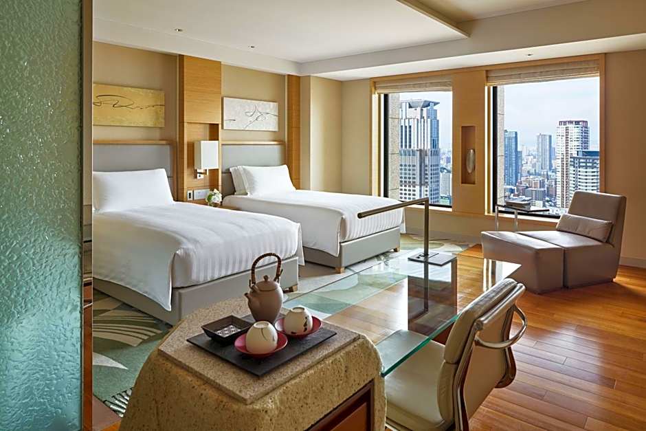 This spacious room features Osaka city views. Marble-floored bathroom features a rain shower.
